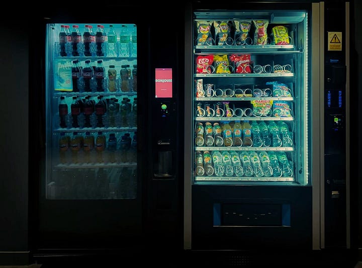 the juice box wheezed in his grip, a small, collapsing gasp that scraped the silence raw. across the hall, the vending machine flickered, its rows of apple juice glowing cold behind plexiglas.